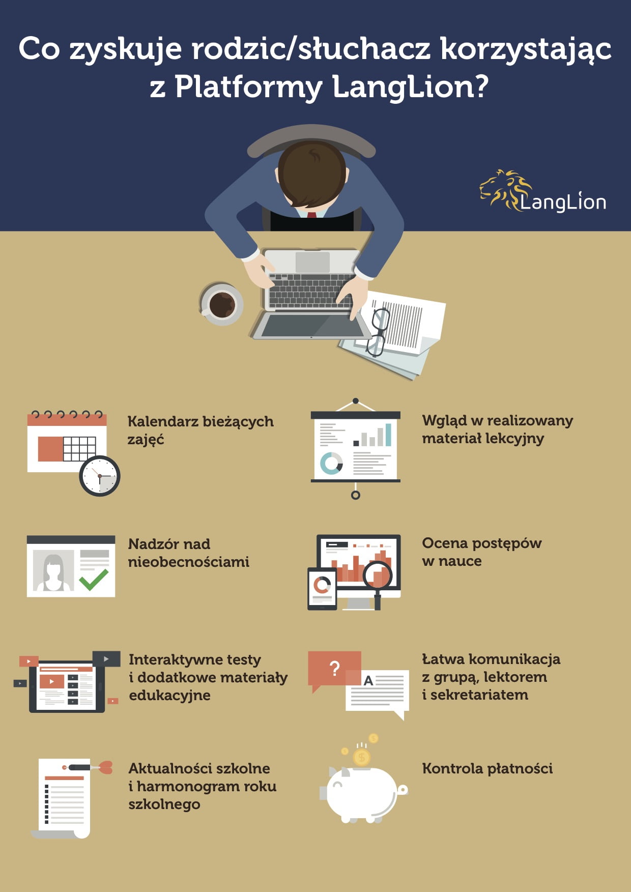 - Panel Kursanta - łącze do Twojego konta na platformie Langlion (szczegóły poniżej)